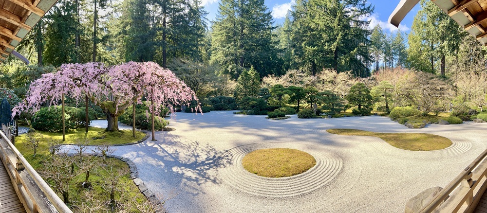Stunning cherry tree specimen in the Sand and Stone Garden at the Portland Japanese Garden