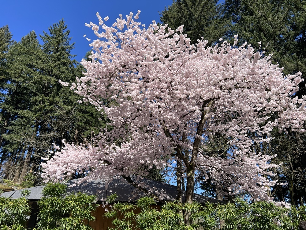 Cherry tree in peak bloom in the Portland Japanese Garden