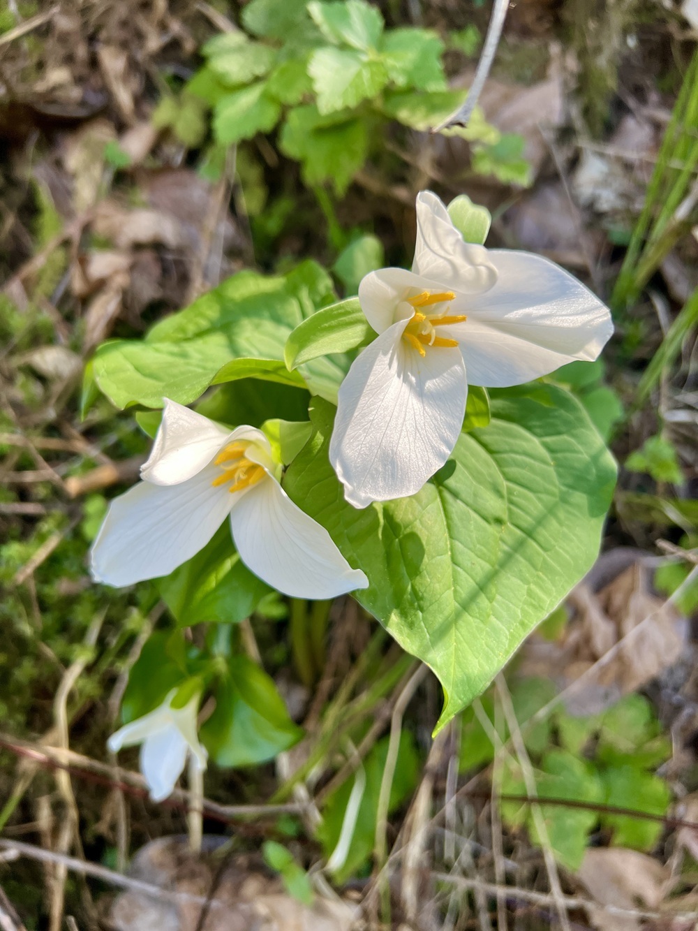 Elegant with a stately presence, these woodland plants are spring ephemerals, producing large flowers that include three petals, three bracts, and three sepals. Plants thrive in wooded areas with shade and dappled sun, as well as moist soil conditions. They appreciate a bit more of the less intense spring sunshine, so you'll often find they thrive better in forests with deciduous trees.
